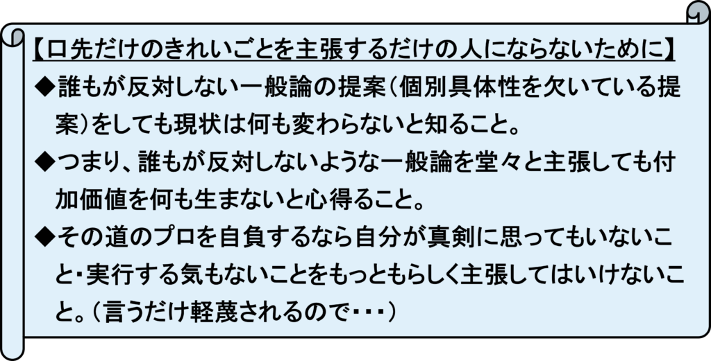 ◆プロなら口先だけのきれいごとを主張するだけで終わりにしてはいけないと肝に銘じること